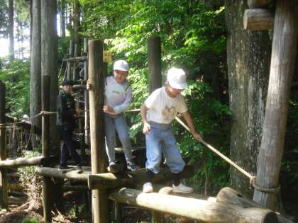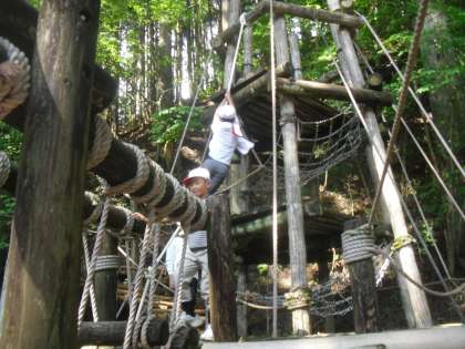 一方で、先に行きたい子はどんどん前に進み、高いロープや吊り橋にも果敢に挑戦しています。