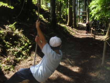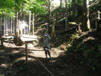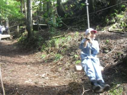 ジップラインにも挑戦!風を切って滑り降りる子どもたちの顔には、笑顔がはじけています。