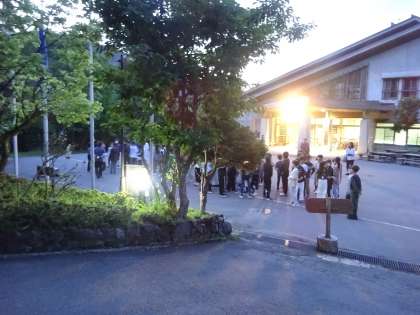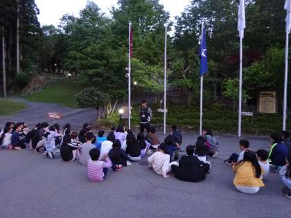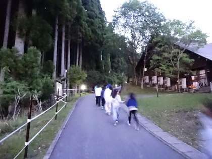 第1営火場まで、レク係が誘導し、静かに歩いています。