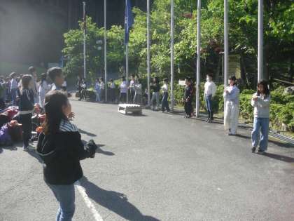 今朝は少し気温が低めでしたが、子どもたちは元気いっぱいに朝の集いに参加しました。