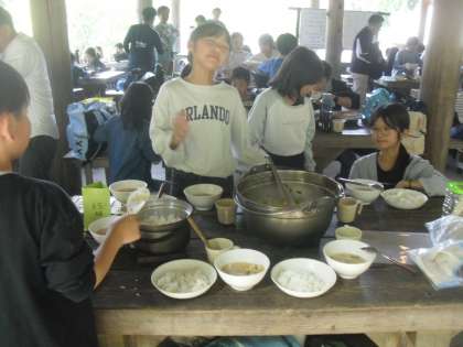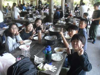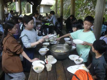 豚汁完成しました!どのグループも自分たちで作ったものを美味しくいただきました。