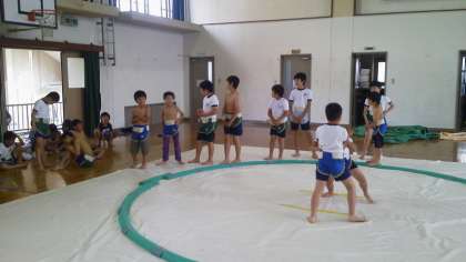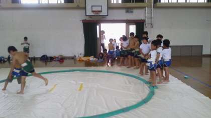 たくさん見学に来てくれたので,部員たちは少し緊張気味でしたが,学童の子どもたちの声援のおかげで,いつも通りのびのびと自分の相撲を取れました。