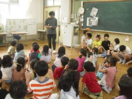 ひまわり学級に1年生が訪れ、ひまわり学級について学ぶ活動を行っていました。
