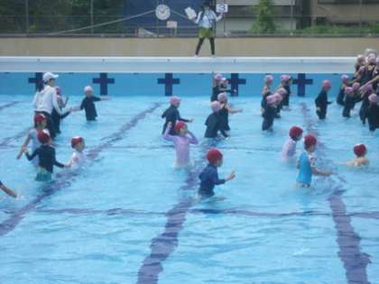 1年生 水泳学習with 板橋幼稚園の園児たち