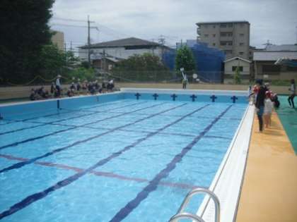 1年生にとっては初めての水泳学習。「めっちゃ広い!」「すごい!」と、子どもたちは口々に感想を話していました。