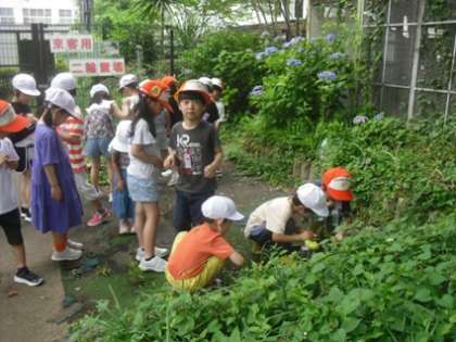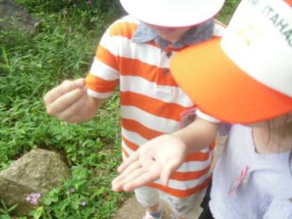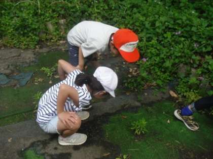 夏を感じるものを探す活動を行いました。校庭や教室の中で、季節の変化に気づく姿が見られました。