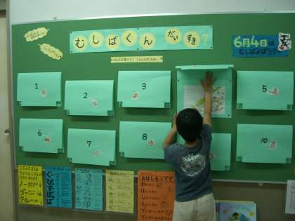 6月4日は6と4で「むし」と読み,むし歯予防デーです。「むし」とは,ミュータンス菌のことです。保健室前の掲示物もむし歯になる様子が描かれた絵本をもとにした内容に変わりました。
