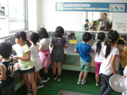 給食後の歯みがきの時,手洗い場に行くと「きれいにみがけたか見て〜!」と,子どもたちが口を開けて見せてくれます。「歯が光っているし,合格!」と言うと,とっても喜んでくれます。毎日の歯みがきですが,6月はご家庭でも磨けてるかチェックはどうですか?