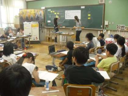 数直線の目盛りをもとに、1と0.1、0.01、0.001の関係について調べていました。調べたことを発表していました。
