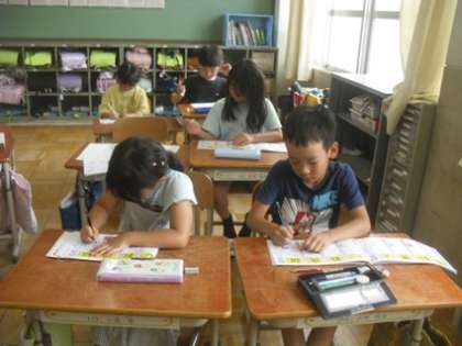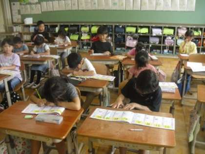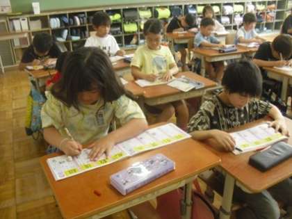 正しい姿勢で、丁寧に漢字を書くことに集中して取り組んでいました。