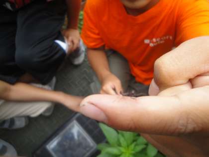 昼休みに5年生の子どもたちが集まり,虫かごの中を覗き込んでいました。