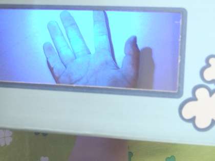 手洗いチェッカーを使って、きれいに洗えているか確認しました。