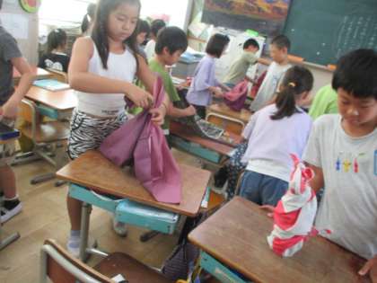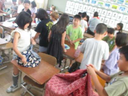 今日は、ふろしきを実際に手に持ち、いろいろな物を