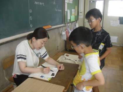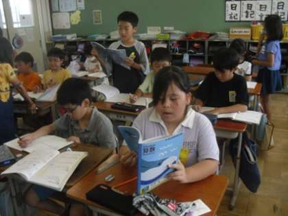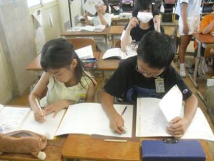 4年生も学期のまとめをしています。教科書の問題を黙々と解いたり、友だちと話し合ったりしながら、学習を進めています。