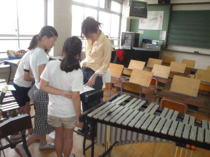 6月の児童朝会に向けて,休み時間に練習に励んでいます。先生のアドバイスをしっかりと聞いて,楽しく活動できていました。