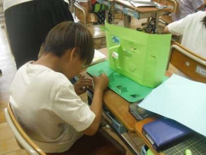 窓を開けられる仕組みや土台の工夫など、想像を膨らませながら楽しく制作を進めていました。