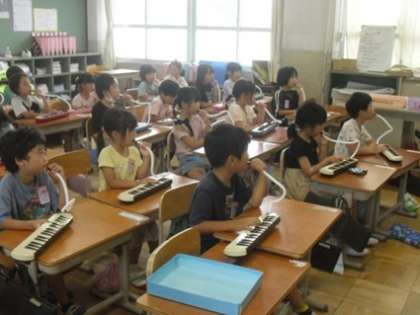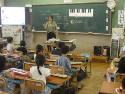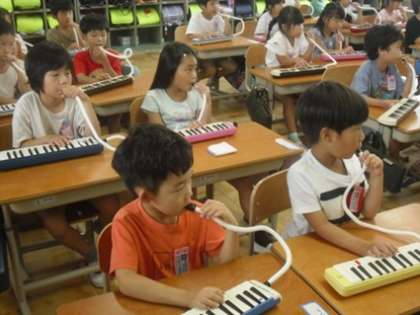 鍵盤ハーモニカを使って音楽の学習をしました。