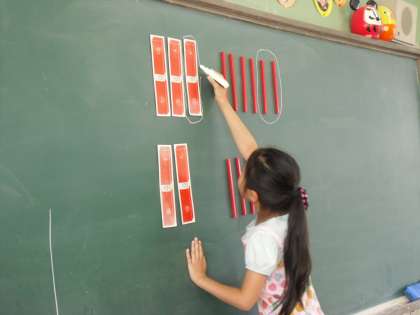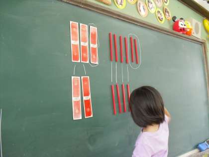 数え棒を使って,ひきざんの筆算の仕方を話し合いました。