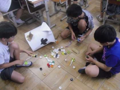 ゴミ分別ゲームや雑紙リメイク、廃材アート、冷蔵庫マップ作りなど、身近な課題に目を向けながら、自分たちでアイデアを出して活動を進めています。