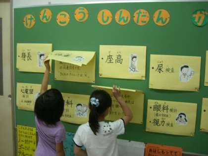 4月から実施してきた「定期健康診断」がすべて終了しました。「定期健康診断」は学校保健法において,毎学年定期に実施するように決められています。子どもたちの成長の様子を調べたり,病気の早期発見をすることはとても大切なことです。