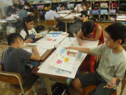 色の塗り方に工夫をこらしながら、自分の思いを絵に込めようとがんばっています。