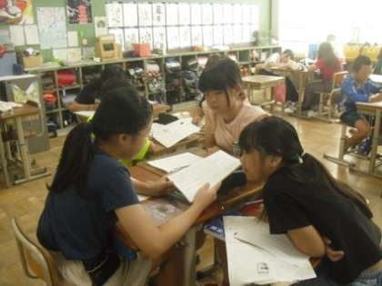 物語「たずねびと」の学習では、場面設定について話し合いながら、登場人物の気持ちや物語の展開を深く読み取る力を養っています。