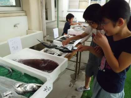 魚介類の展示が8時より始まっています。11時30分くらいまで各学年で,普段見ることのできない魚に触れる体験をします。保護者の方地域の方も是非ご覧ください。