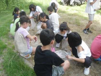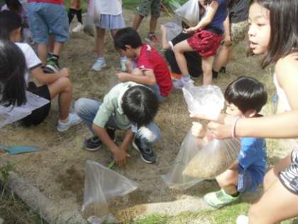 「1000gってどれくらい?」をテーマに、砂を集めてはかりで重さを調べる活動を行いました。