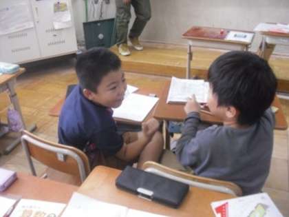 4×8と8×4の違いについて、子どもたちが自分の考えを出し合いながら理解を深めています。