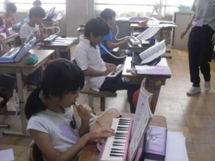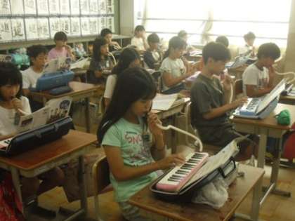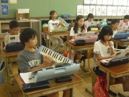 鍵盤ハーモニカを使って「こげよまいける」の演奏に取り組んでいました。