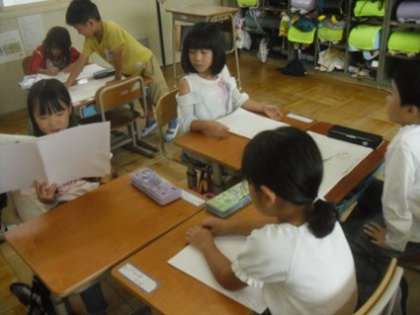 「くじらぐも」の音読に取り組んでいます。どう読めば気持ちが伝わるかを考えながら、お互いの感じたことを話し合っています。