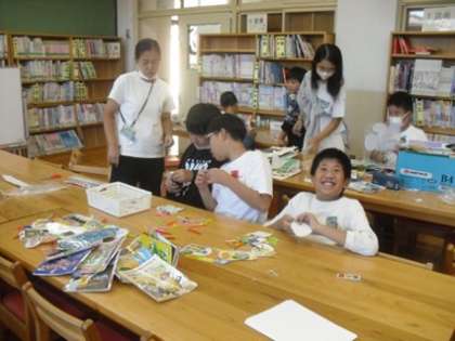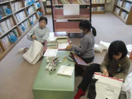 図書委員会では、読書週間に向けて「本の福袋」づくりや、しおりの作成などに取り組んでいました。