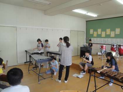 ♪6年生 音楽「せん律やひびきの変化をとらえて演奏しよう(音の重なりとひびき)」〜班別練習〜 その1