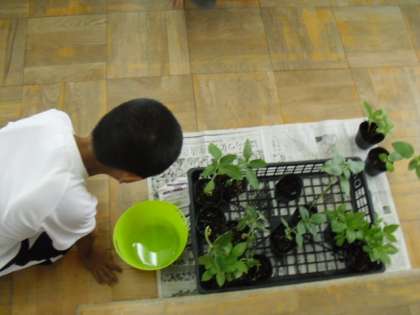 ホウセンカとヒマワリのめばえを観察して比べました。