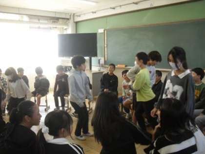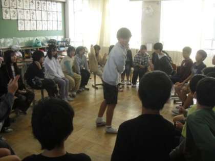 授業の時間が少し余ったため、みんなで楽しく過ごしていたようです。笑顔いっぱいのひとときに、学級の仲の良さが感じられました。