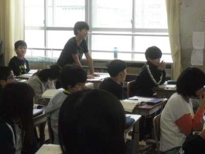 話し言葉と書き言葉の違いについて、意見を出し合いながら話し合っています。