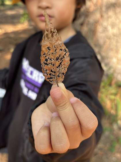 色づいた葉っぱや木の実を夢中になって探しながら、自然の中を歩く子どもたちの表情はとてもいきいきとしていました。