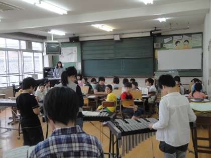 ♪6年生 音楽「せん律やひびきの変化をとらえて演奏しよう(音の重なりとひびき)」〜班別発表〜