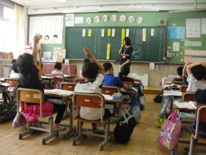 写真と文を対応させながら,「問い」と「答え」の文を確かめて読んでいきました。