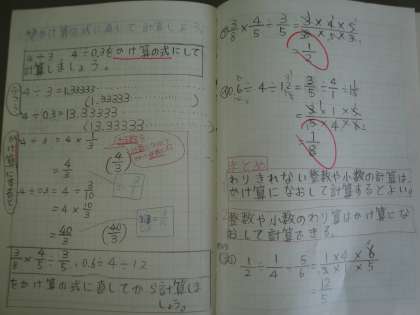 小数や整数を含むかけ算とわり算の混じった計算を分数の形にまとめて計算しました。
