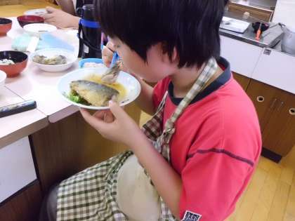 プロの職人さんにご指導いただき,素晴らしい料理が完成しました。あまりにのおいしさに顔もほころびます。