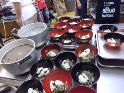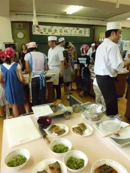 今日も十数名の板前さんが来校してくださり,丁寧に魚のおろし方や,料理の仕方をご指導してくださいました。めったに経験することのない,価値ある体験をさせていただきました。ありがとうございました。