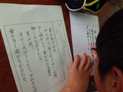 硬筆書写に取り組みました。緊張感をもって書き込んでいました。