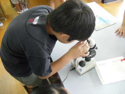 また,メダカが食べる微生物の観察もしました。教科書に載っている微生物と同じものが見られて,子どもたちも喜んでいました。