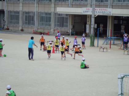 現在は,学習後半で「バトンパス」に工夫しながらタイムを縮めていくことをめざしています。