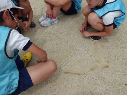 チームで「どんなバトンパスをすれば速くなるのか」一生懸命話し合っています。