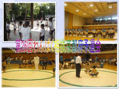 6月17日(日)京都市武道センタ−において,「第26回わんぱく相撲京都府予選会」が行われました。400名以上の参加があり,本校からは13名の児童が出場しました。