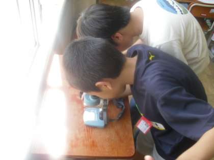 5年生では,理科の学習で生まれたての卵を「双眼実体顕微鏡」で毎日観察していました。先週の始めに生まれた卵が約一週間たって,メダカの赤ちゃんとなりました。