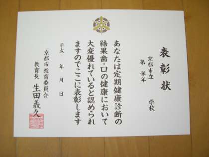 朝会で,校長先生から「よい歯の児童表彰」についてお話がありました。6年生の34名が選ばれ,京都市教育委員会から賞状をいただきました。おめでとうございます!