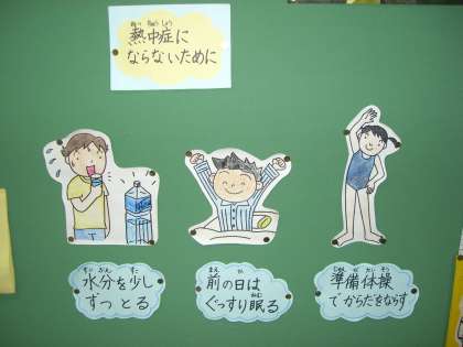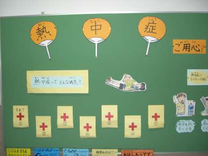 7月の保健室前掲示板 「熱中症にご用心」